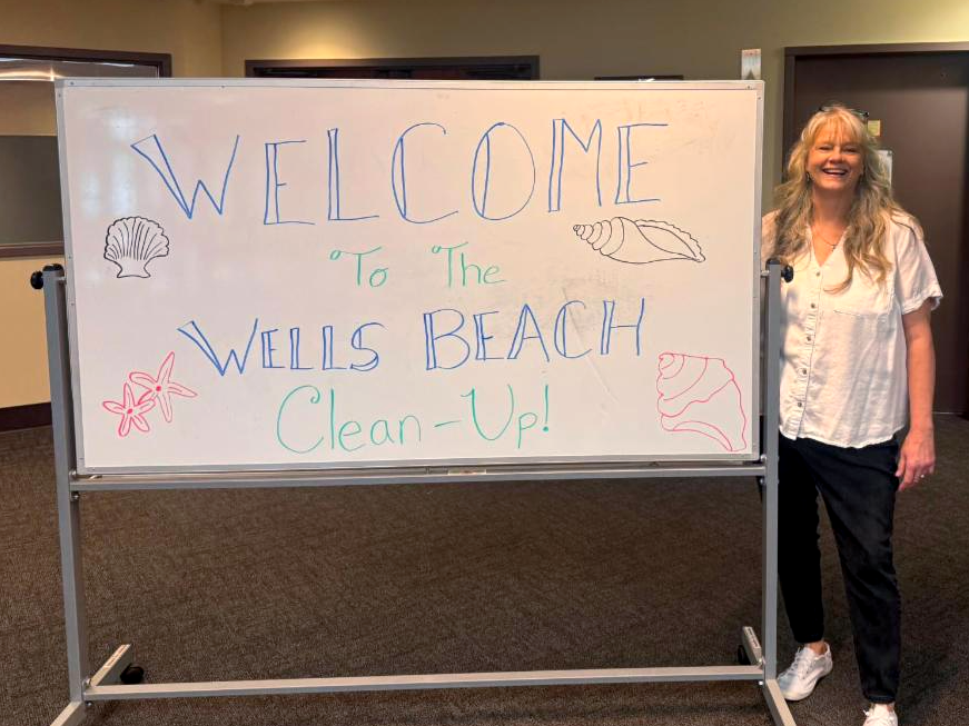 Saundra launched the beach clean up initiative in 2017 with support from Wells Police Chief Putnam. The first year's clean up had approximately 300 volunteers, who collected 400 pounds of trash. To date, six Beach Clean Ups have been held, with a total of 13,575 pounds of trash cleared from the beaches! The 2026 clean up will mark the 7th clean up held in Wells, all of which are led by Saundra.