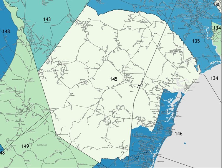 The second item to be aware of is what district a voter lives in. Wells has two districts in the Maine House of Representatives: District 145 and District 146.