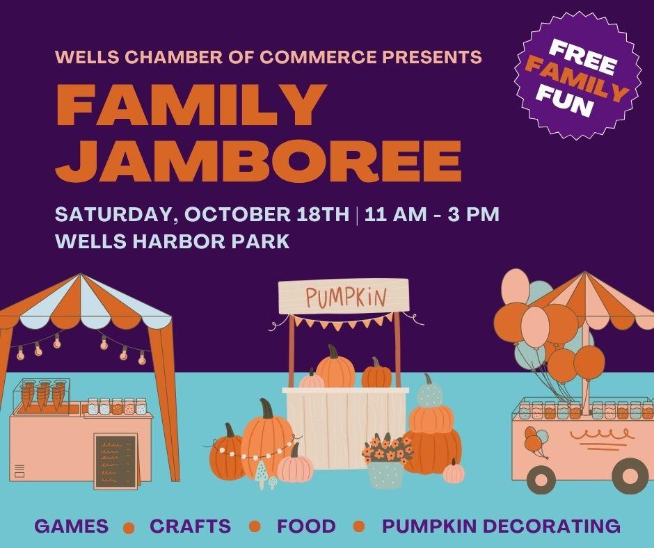 The Wells Chamber of Commerce will host its 16th annual Family Jamboree, taking place on Saturday, Oct. 18, from 11 a.m. to 3 p.m. at Wells Harbor Park, 331 Harbor Road.