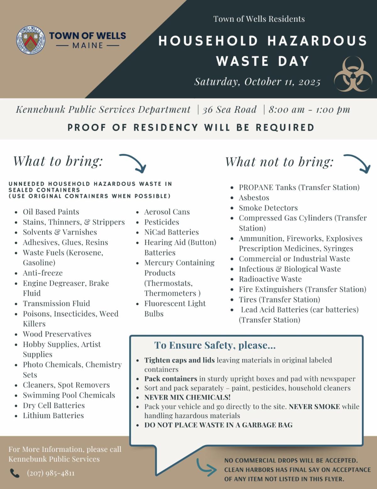 Looking ahead, residents of Wells will have the opportunity to safely dispose of unwanted household hazardous waste items on Saturday, October 11th. The event will be hosted in Kennebunk, and Wells residents are welcome to participate. More details on accepted items and disposal guidelines are available on the Town’s website or Facebook page.