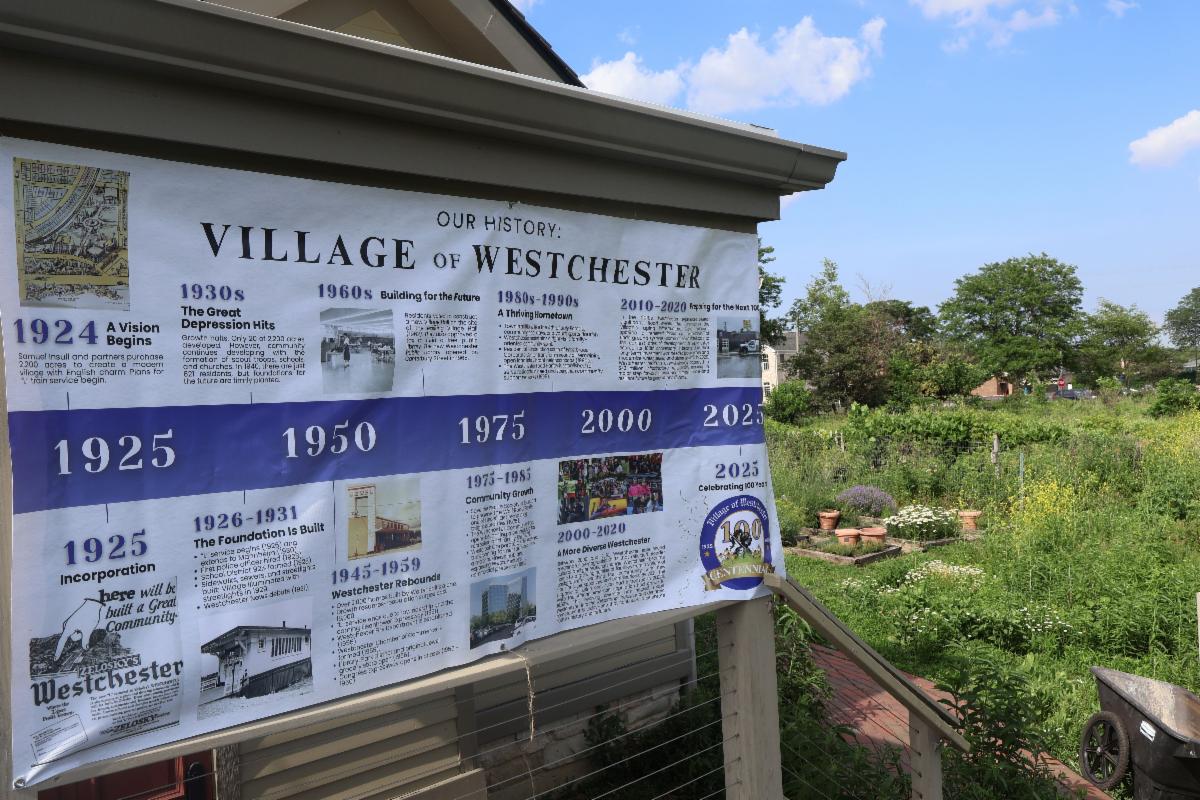 A special thank you to Patricia and Drew Reaves, Save the Prairie Society Directors and dedicated historians, who brought the event to life with personalized tours, rolling presentations, and historical exhibits. Their knowledge and passion offered guests a unique window into Westchester’s roots and the significance of the Prairie House. In a heartfelt gesture, the Reaves also gifted the Village with a piece of the original wood structure from 1920s Westchester developer William Zelosky’s office—an important piece of Westchester history.