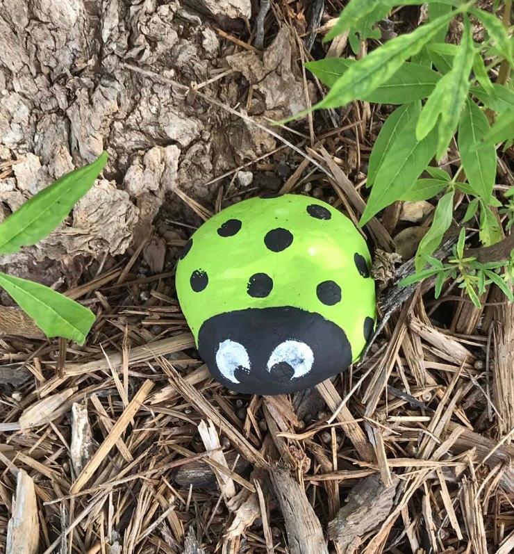 Have you seen painted rocks around the neighborhood lately? Maybe a fierce dinosaur or a cute ladybug hidden under a tree?