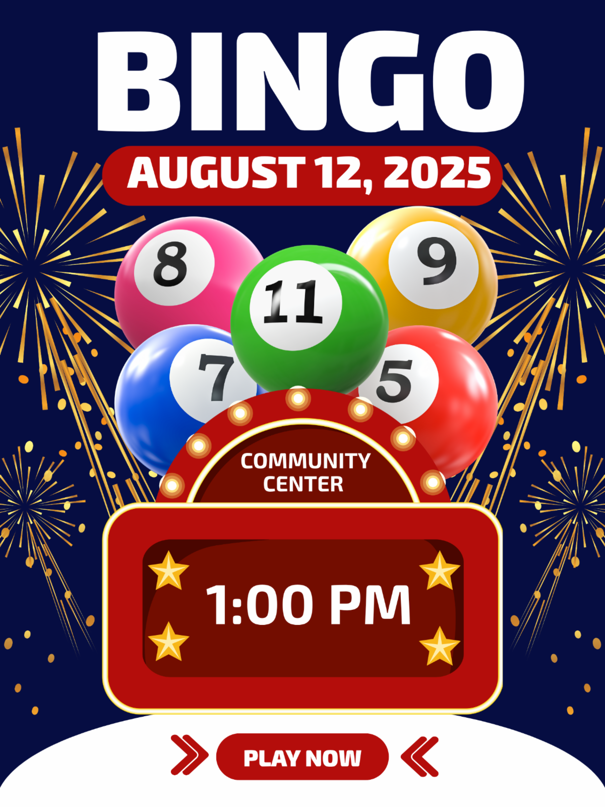 Bingo - Second Tuesday at 1:00 PM (August 12, 2025)