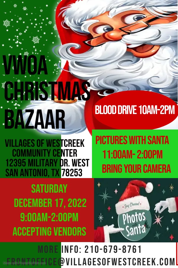 If you wish to add your yard sale to the listing, please call the VWOA Office at 210-679-8761 by 12 noon on Friday before the scheduled yard sale.