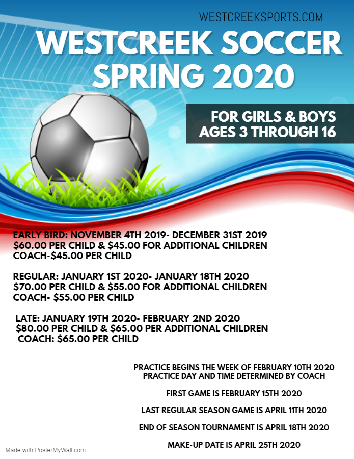 throughout the year. Visit our "Westcreek Sports Program" website for more detailed information about our specific programs and registration information for 2020!