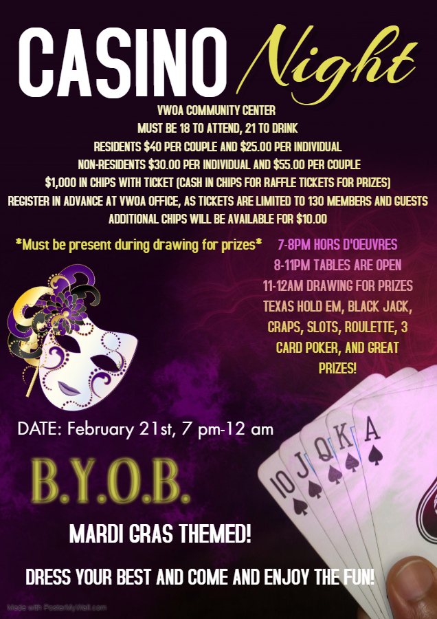 Location: VWOA Community Center Hall, 12395 Military Drive West, San Antonio, Texas 78253