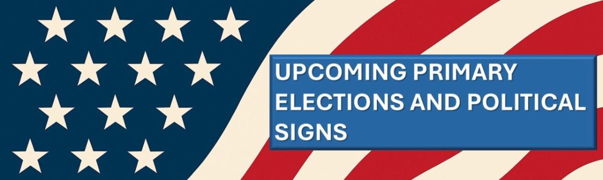 Residents are reminded that signs expressing support for individual political candidates, parties, local bond issues, or referendums may be placed in a private front yard no sooner than January 17, 2026, for the March 3, 2026 Election. Unless the candidate is involved in a runoff election, these signs must be removed by March 10, 2026.