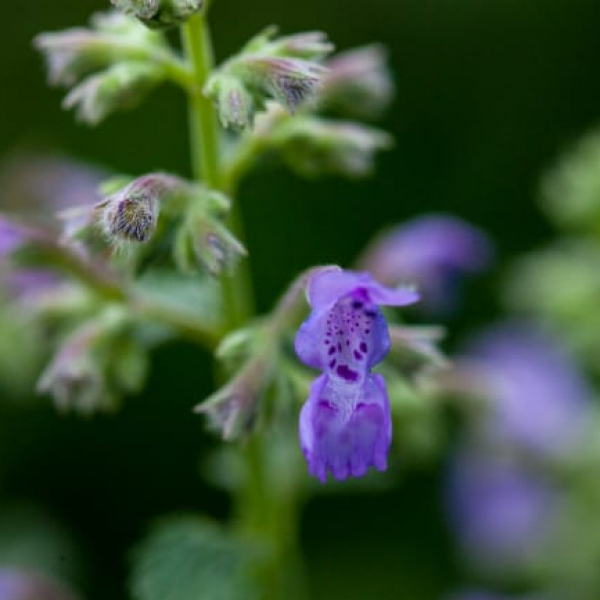 There are many cultivars. Nepeta cataria is the classic catnip; Faasen's catmint (Nepeta x fasseenii) is a Dutch hybrid that has bloomed all summer long, even in the Texas plains - making it a favorite for not only cats but butterflies as well.