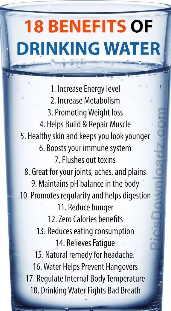 Water is important to nearly every part of your body. Every organ of our body needs water to function. It carries nutrients and oxygen to our cells, converts food to energy, and many more benefits listed in the image. Not only will hitting your daily recommended intake help you maintain your current state of being, it may even improve your overall health. Here are some ideas for how you can be sure you drink enough: