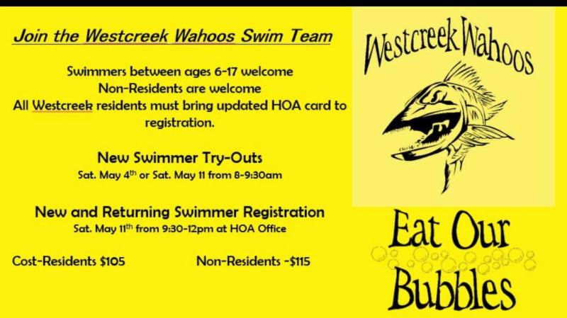 - On June 7th, the Sports Park Pool will be closed at 3:00 PM for the remainder of the day to accommodate the Westcreek Wahoos Swim Practice.