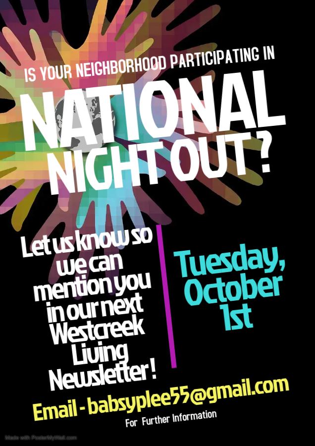 Remember that neighbors don’t have to live next door, just someone who lives in Westcreek. It could be as simple as a mom who helps out by picking up a child from school, a neighbor who cuts your yard for you just because, or brings in your trash cans. It does not have to be a grand gesture, just something that made your life easier, made you happy, or was just thoughtful.