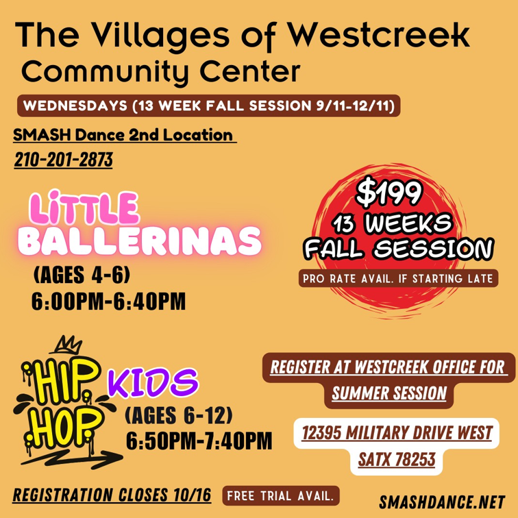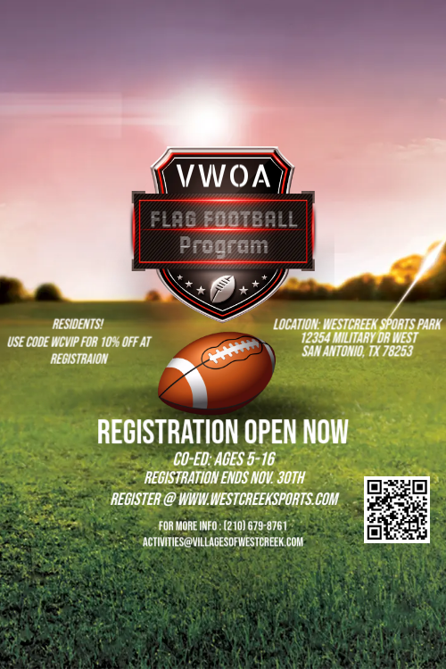 Email: frontoffice@villagesofwestcreek.com or call 210-679-8761.
