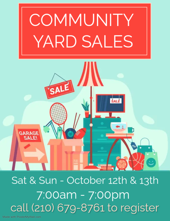 Yard Sales - Second full weekend of the month (October 12th and 13th).