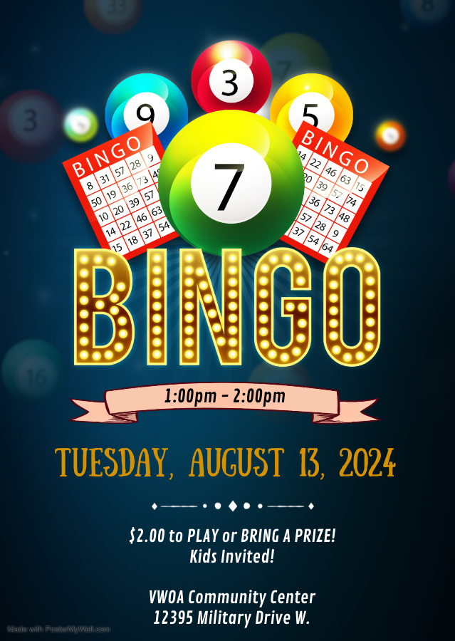 Bingo - Second Tuesday at 1:00 PM (October 8th)