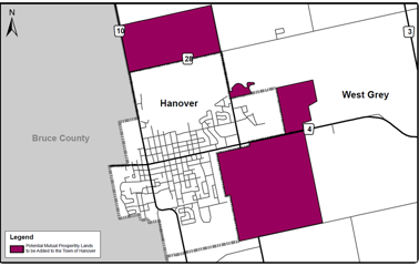 The Town of Hanover and the Municipality of West Grey are pleased to announce agreement in-principle to adjust boundary lines between the two municipalities and to proceed with next steps under the Municipal Act, 2001 to establish a Boundary Adjustment Agreement for both Councils’ consideration.