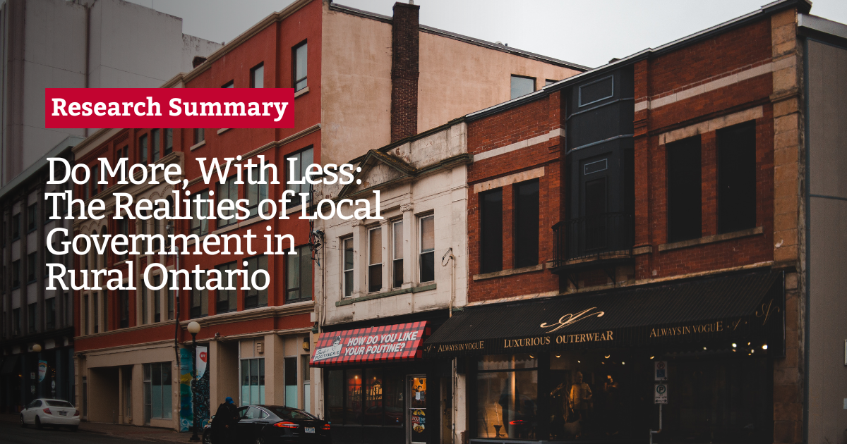 The Connecting the Dots initiative is excited to share a research summary about the challenges facing rural municipalities - Do More, With Less: The Realities of Local Government in Rural Ontario. The summary highlights the impact of New Public Management reforms and how rural governments are coping with limited resources while facing growing demands.