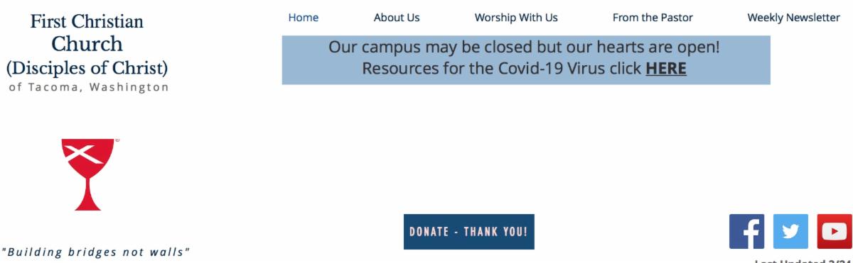 - We continue to offer help for emergencies, including those who cannot get out and need supplies (groceries, household items, prescriptions) and have volunteers who are willing to help. Please let us know what you need by calling the church office at 253-752-7734.