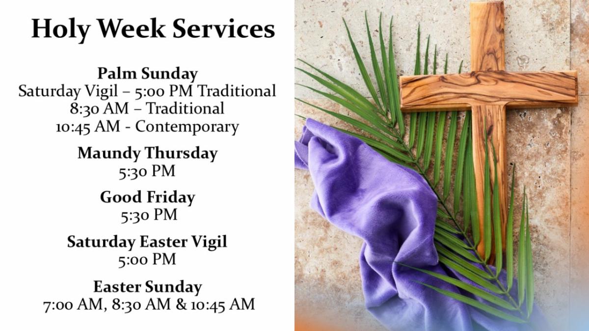 These final weeks of Lent invite us to walk more closely with Christ as he makes his way to the cross. I hope you will join us for worship during these sacred days as we prepare our hearts for the joy of Easter.