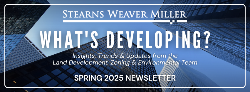 Stearns Weaver Miller is a Florida-based law firm with more than 150 attorneys and offices in Miami, Coral Gables, Fort Lauderdale, Tampa and Tallahassee. For nearly 50 years, our multidisciplinary team of attorneys and professionals have worked collaboratively to help our clients understand and resolve complex legal issues and disputes. For more information, please visit stearnsweaver.com.