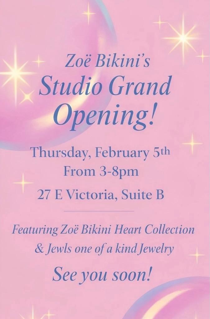 Join Zoë Bikini for their Grand Opening celebration at their new downtown location! Guests are invited to stop by the workshop, enjoy sweet treats, and shop as Valentine's Day approaches. Special guest Julie of Jewls will be onsite with handmade, one-of-a-kind jewelry, perfect for yourself or your Valentine. Explore the I Heart Zoë collection of trucker hats, hoodies, tanks and totes, along with jewelry, assorted apparel, and bikinis. Zoë Bikini looks forward to welcoming the community into their new home!
