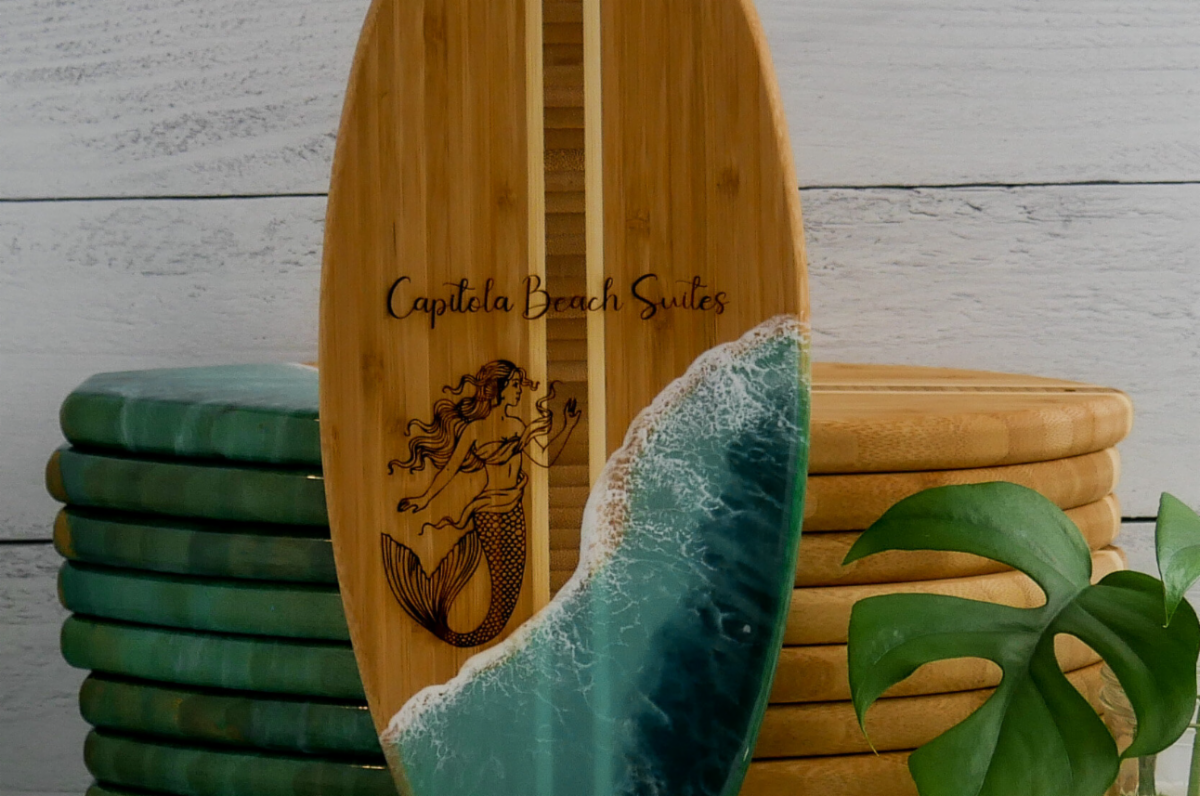 Join The Crafter's Library and learn how to make your own ocean resin charcuterie board. No prior experience or knowledge needed! They have the supplies, boards, and instructions for you to walk away with a jaw-dropping ocean resin cutting (surf)board!