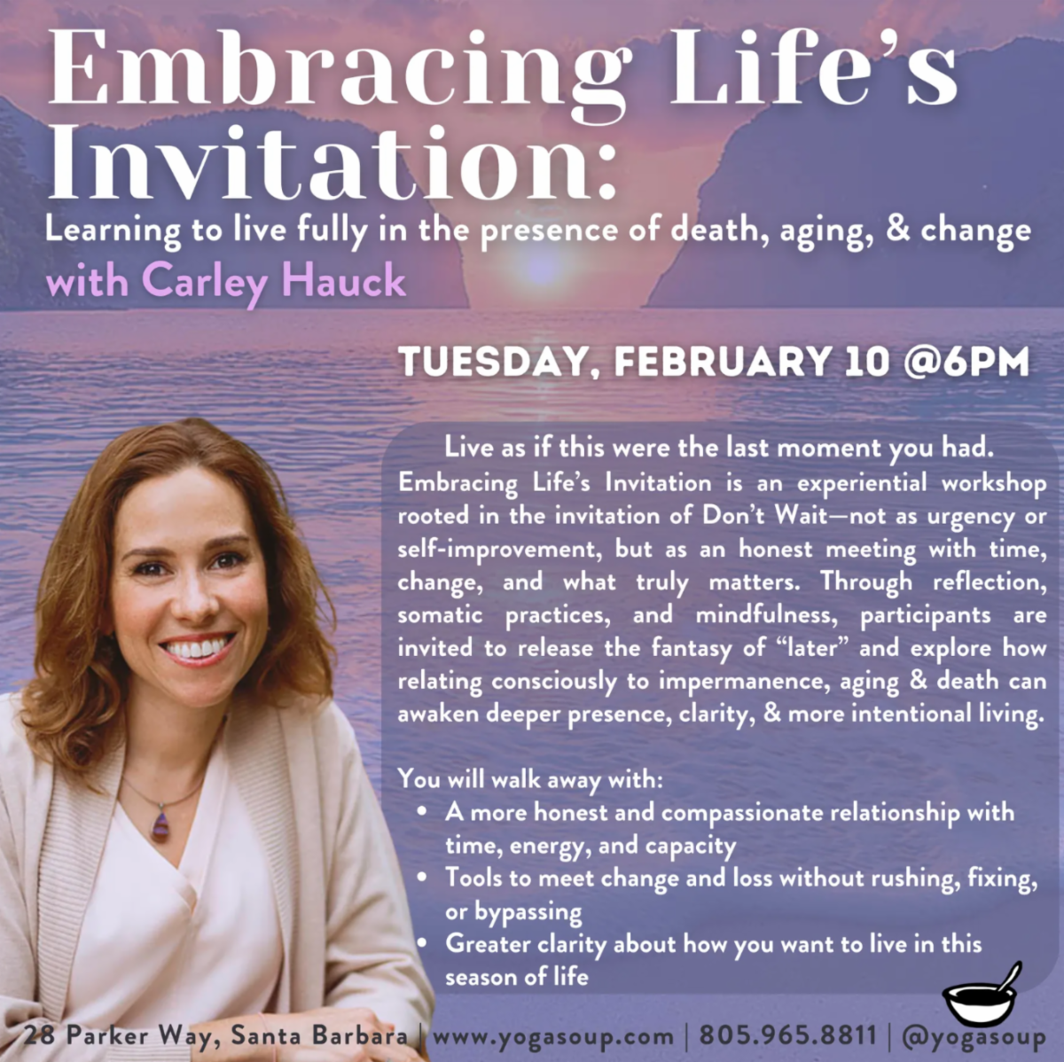 Join Yoga Soup Monday nights at 7:00 PM for a free guided meditation that often includes live music, storytelling, reiki, and sound bath with Radhule Weininger PHD, MD and Anahita Navab Holden, PhD of Mindful Heart Programs.