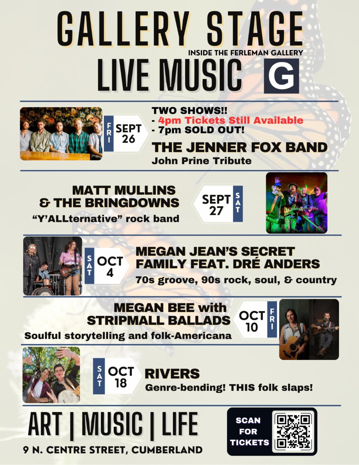 • Gallery Stage - October 18, 7 pm - Rivers - Rivers’ style is a wash of genres that defies classification and leaves audiences thirsty for more. Now this folk slaps. https://www.tickettailor.com/events/gallerystage/1747295