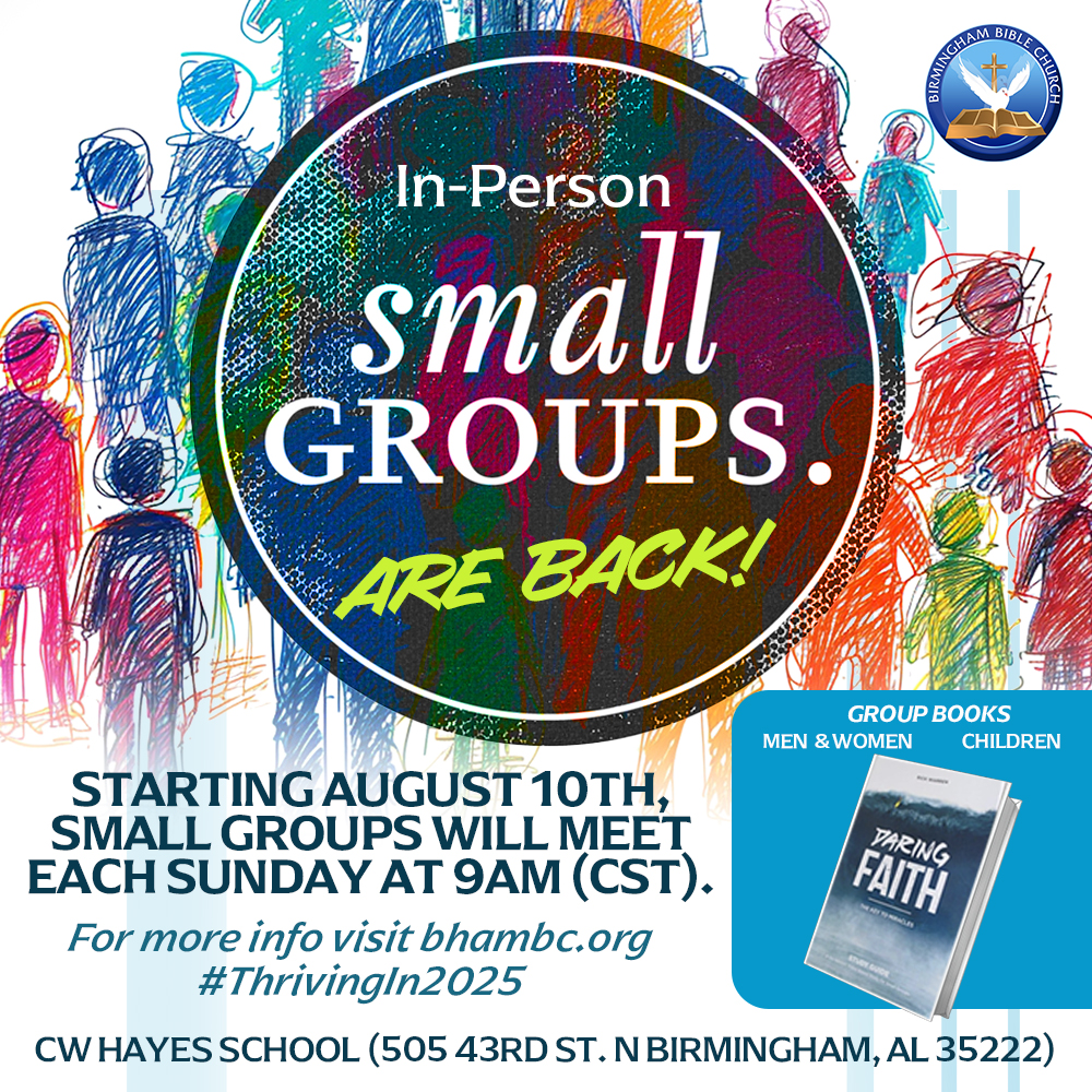 My Sunday app: Go to your App Store, download the “MySunday” App (all one word), then locate Birmingham Bible Church