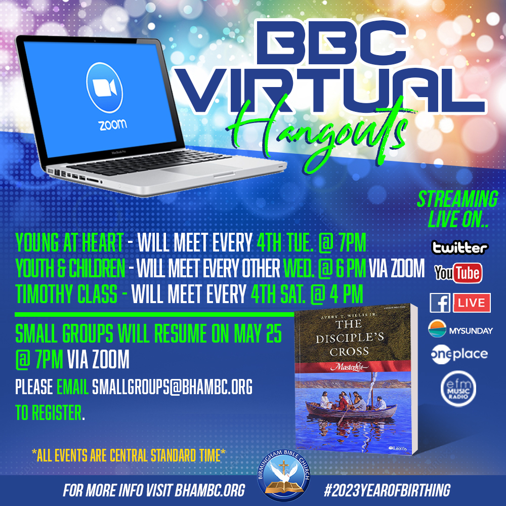 My Sunday app: Go to your App Store, download the “MySunday” App (all one word), then locate Birmingham Bible Church