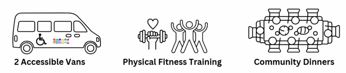 The goal of the Spring Fundraiser was to help fund the purchase of two accessible vans, provide one year of Friday Night Community Dinners, and underwrite one year of physical fitness training. Thanks to our generous community we can accomplish these goals and more this fiscal year!