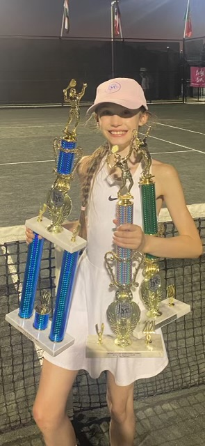 Congratulations to Liberty junior player Nadia Poznick who recently captured the singles, doubles and mixed doubles titles at the "Little Mo" Internationals held in Palm Beach Gardens, FL. Nadia went undefeated in her 8 matches throughout the week in the Girls 9 and under division. Previous Little Mo winners have included Andy Roddick, Dominic Thiem, Coco Gauff, Sophia Kenin and Madison Keys. Nadia is coached by Liberty Director of Tennis, Dan Goldberg.