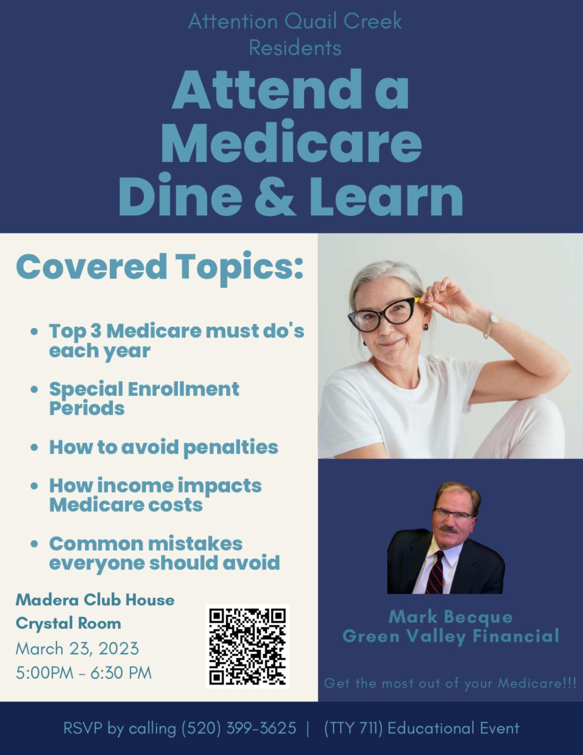The presentation will be at the Madera Clubhouse on March 30, from 10 AM to 11:30 AM