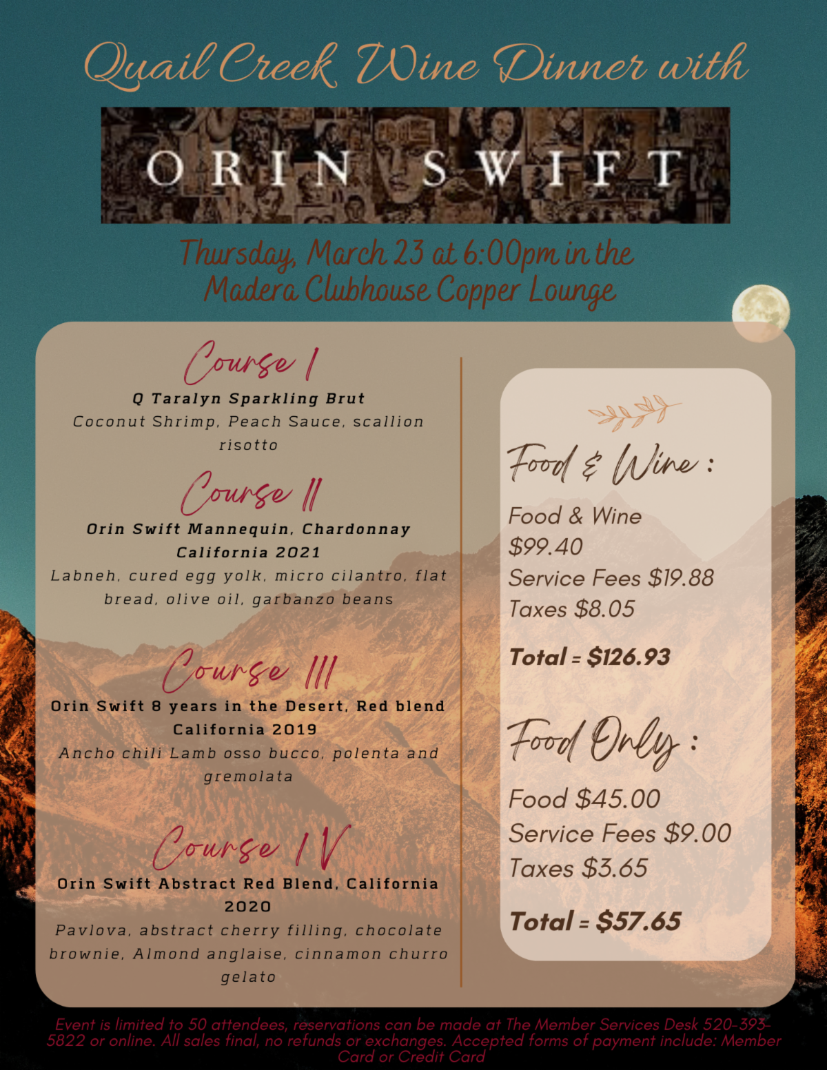 Concerts are sold online or at Member Services, M-F, 8 AM to 4 PM, 520-393-5822. All concerts are $29.00, Member Card or Credit Card only. Concerts are held in the Madera Clubhouse Crystal Ballroom, at 7 PM with a cash bar at 6 PM. No Refunds or Exchanges (All Sales Final). No outside beverages are allowed in the Ballroom.