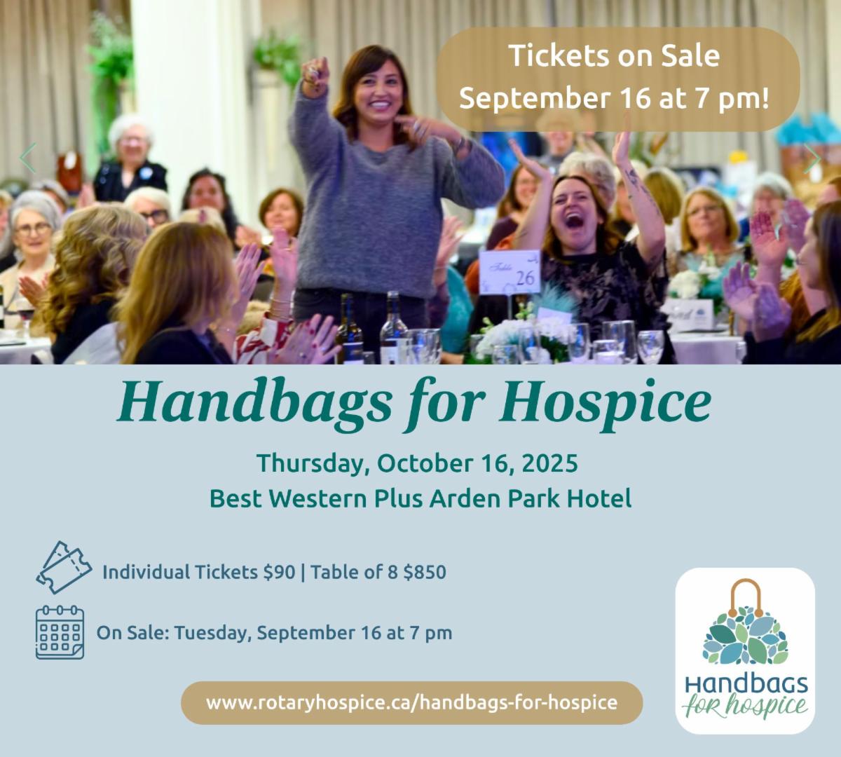 The countdown is on for the 7th annual Handbags for Hospice! Tickets go on sale online on Tuesday, September 16th at 7 pm. We're thrilled to share that to date, we have received 80+ silent auction items, the Paper Purse Wall has over 120 gift cards, and we will be sharing sneak peeks of our Live Auction items soon! Every ticket purchase helps support compassionate end-of-life care at Rotary Hospice.