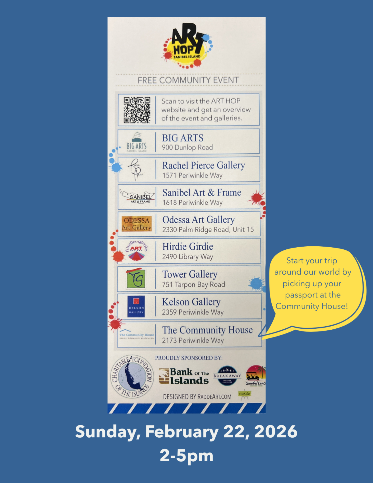 Join us at the February Arts & Crafts Fair, indoors at the Community House! Support your favorite local artists and find a fun selection of uniquely Sanibel items at this event.