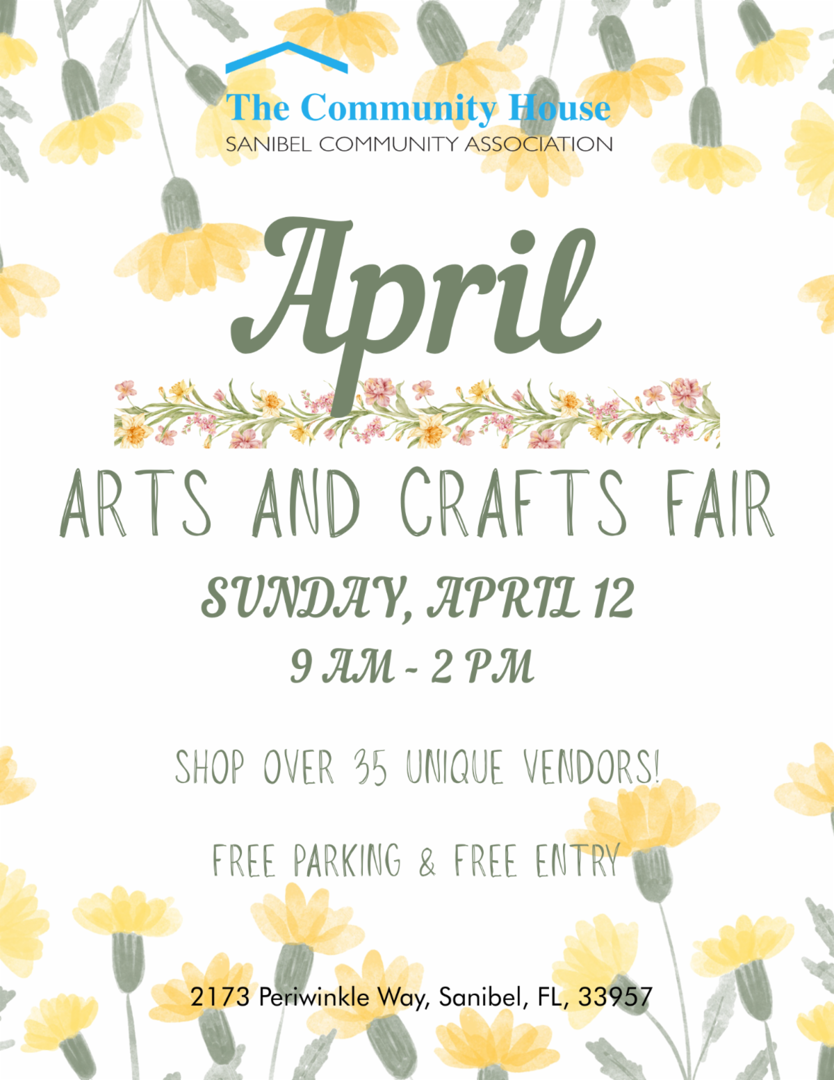 Join us for the last Arts & Crafts Fair of the season, indoors at the Community House! Support your favorite local artists and find a fun selection of uniquely Sanibel items at this event