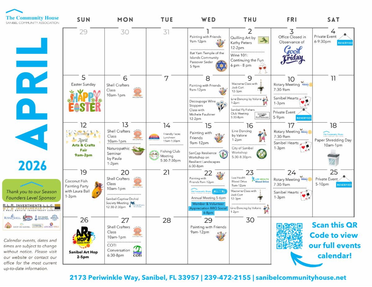 Join us for the last Arts & Crafts Fair of the season, indoors at the Community House! Support your favorite local artists and find a fun selection of uniquely Sanibel items at this event