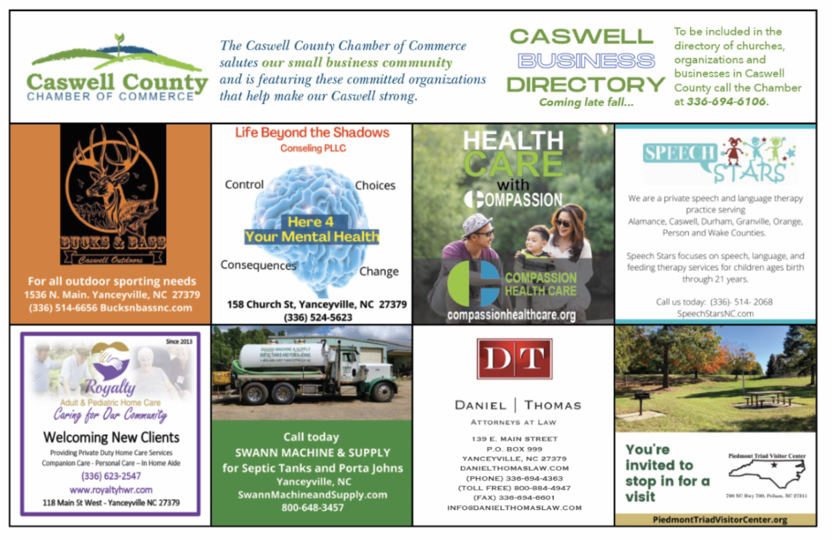 Through the Piedmont Triad Regional Council, the Chamber and Piedmont Triad Visitor Center are connecting with resources to help expand opportunities in Caswell to make sure we can provide residents, as well as folks visiting our area, with the best possible nature experience while using the trials here. Stay tuned for updates as ‘The Year of the Trail’ event comes to Caswell in 2023