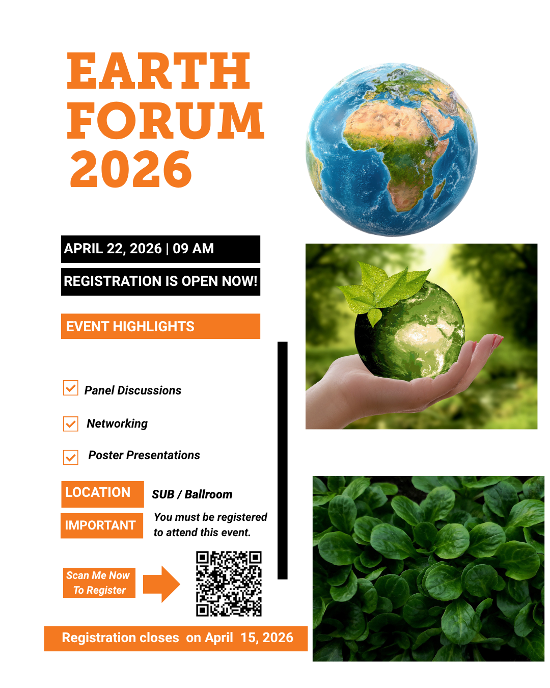 The Office of Sustainability will host the Earth Forum on April 22, Earth Day, starting at 9 a.m. in the Pond Student Union Building Ballroom. This campus-wide event will celebrate sustainability efforts at ISU and engage in meaningful conversations around our collective future.