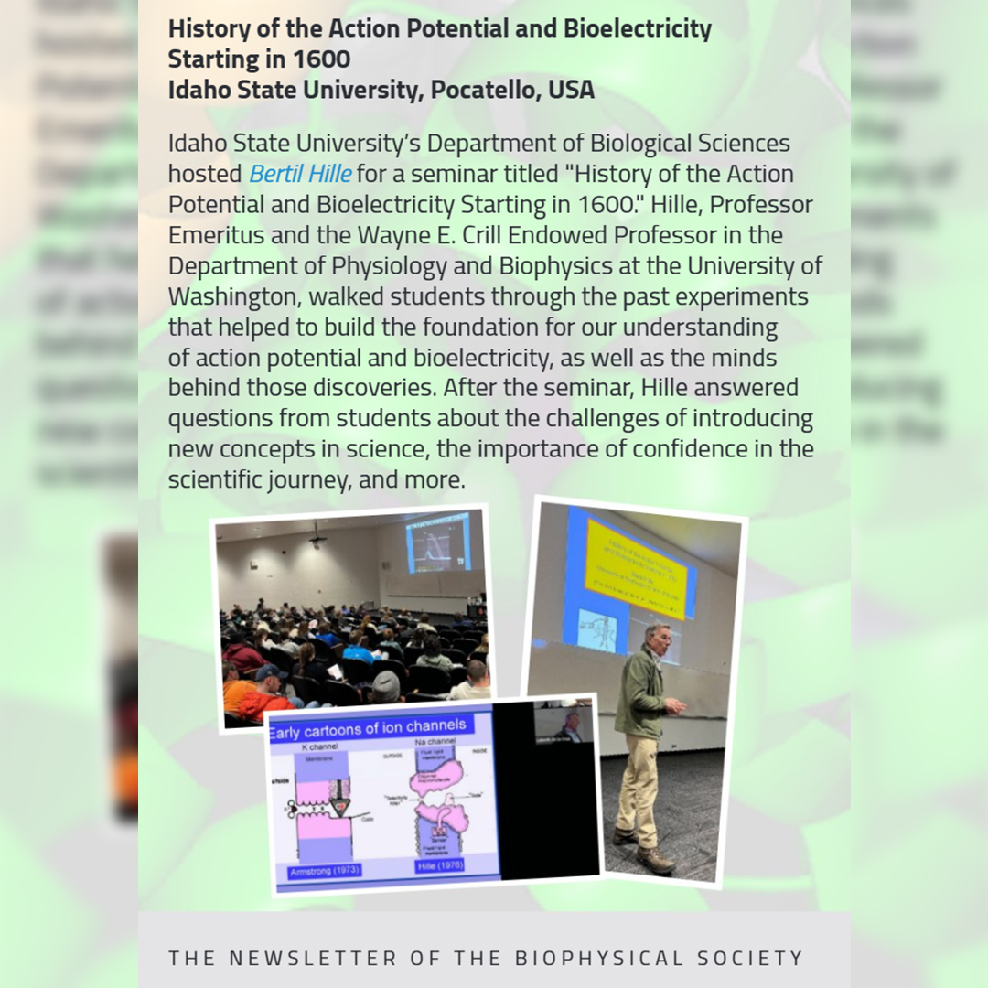 A groundbreaking biophysicist's visit to Pocatello was highlighted in this month's edition of the Biophysical Society Bulletin.