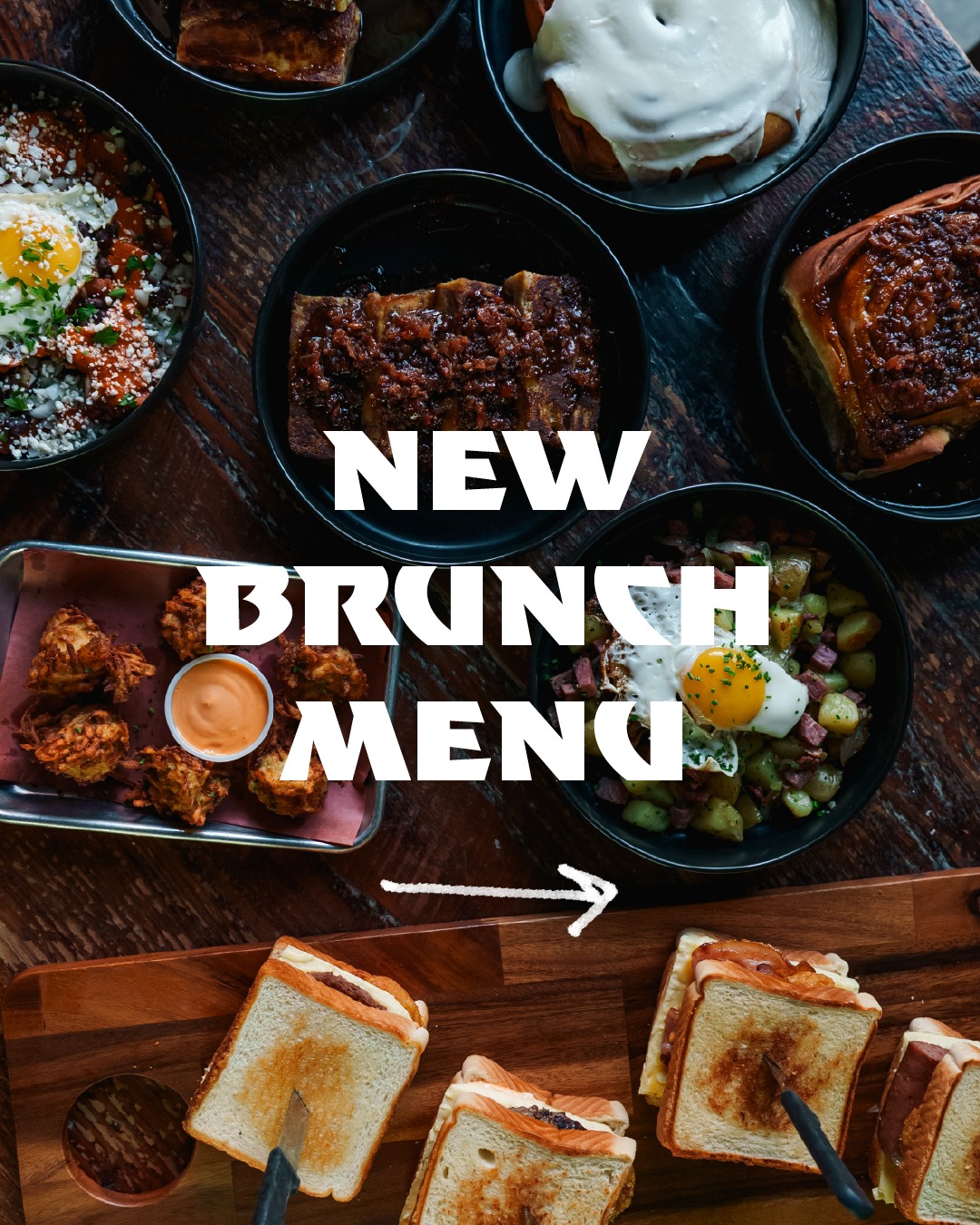 Grains of Wrath launches new brunch menu! The menu includes giant cinnamon rolls dripping in glaze, BYO breakfast sandos stacked sky-high, hash brown fritters loaded with green chiles & cheddar, cinnamon french toast drowning in chocolate + caramel, and chilaquiles!