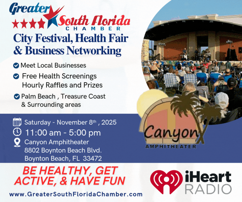 Presented by The Greater South Florida Chamber of Commerce, enjoy free health screenings, connect with local businesses and win raffles and prizes on Sat, Nov 8, 11:00 a.m. No reservation required. FREE ADMISSION
