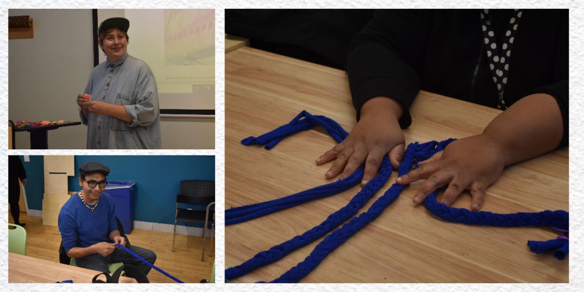 Melissa has been leading hands-on workshops throughout December focused on the therapeutic benefits of creative arts through braiding and knotting techniques using embroidery thread, fabrics, strings and unique and found materials from her art archive.