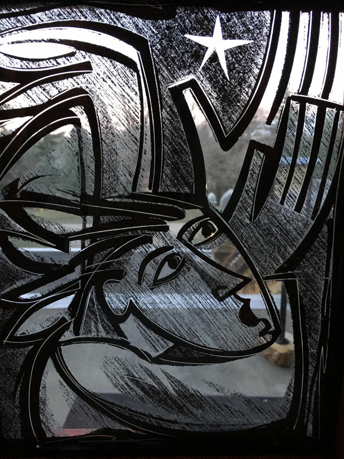 We received this picture titled “Beggar and Saints” from Tony Phillips, a former member of Peace United Church of Christ and active member of the choir. It is displayed in the narthex of the sanctuary.