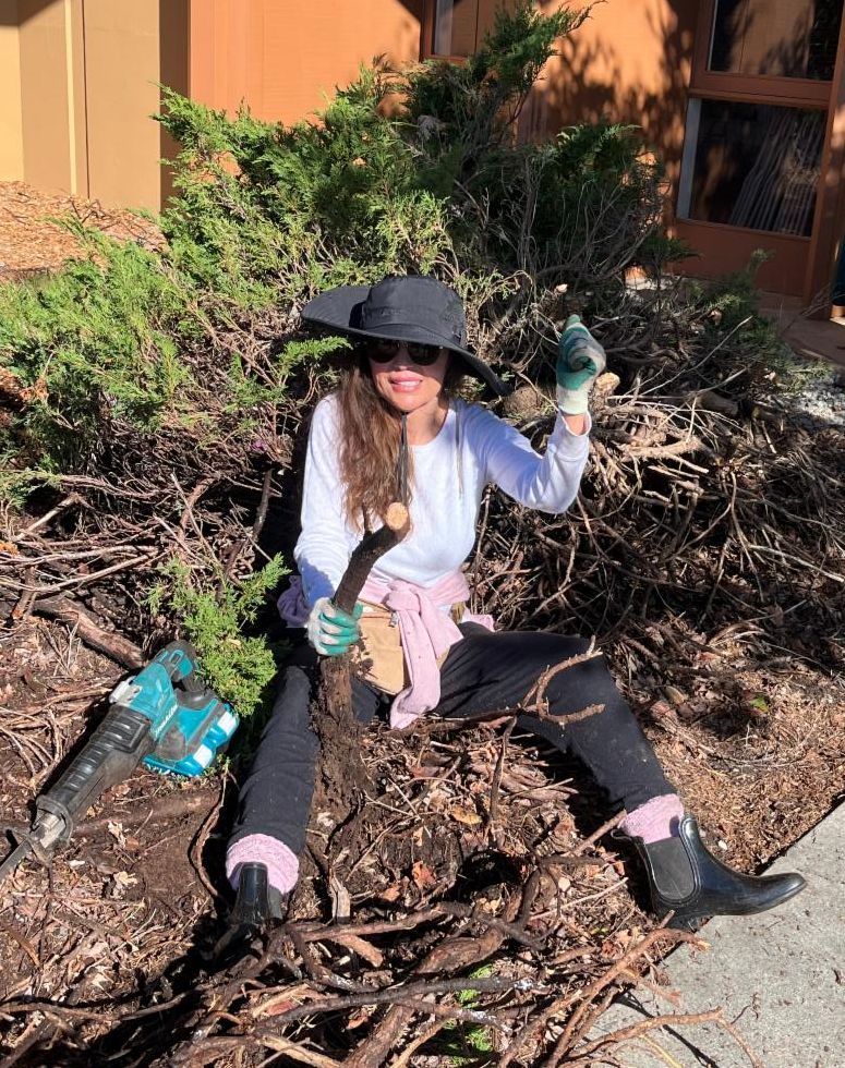 Our Buildings & Grounds sawzall queen, Natalia Duarte, attacked another area of juniper by the sidewalk to the office. With the help of Larry Kistner and Roger Erickson, they hope to have it all gone by this weekend.