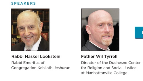 Featuring a discussion with Rabbi Haskel Lookstein, Rabbi Emeritus of Congregation Kehilath Jeshurun in NYC, and Father Wil Tyrrell, Director of the Duchesne Center for Religion and Social Justice at Manhattanville College. Free and open to the public, but registration is required. Details and registration.