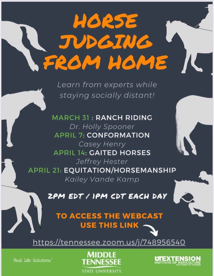 Due to current university restrictions regarding public gatherings, the NC 4-H Horse Program 4-H Horse Judging Contest will be held via an online contest April 16-21. This event will not be held in a live format this year due to the coronavirus outbreak.