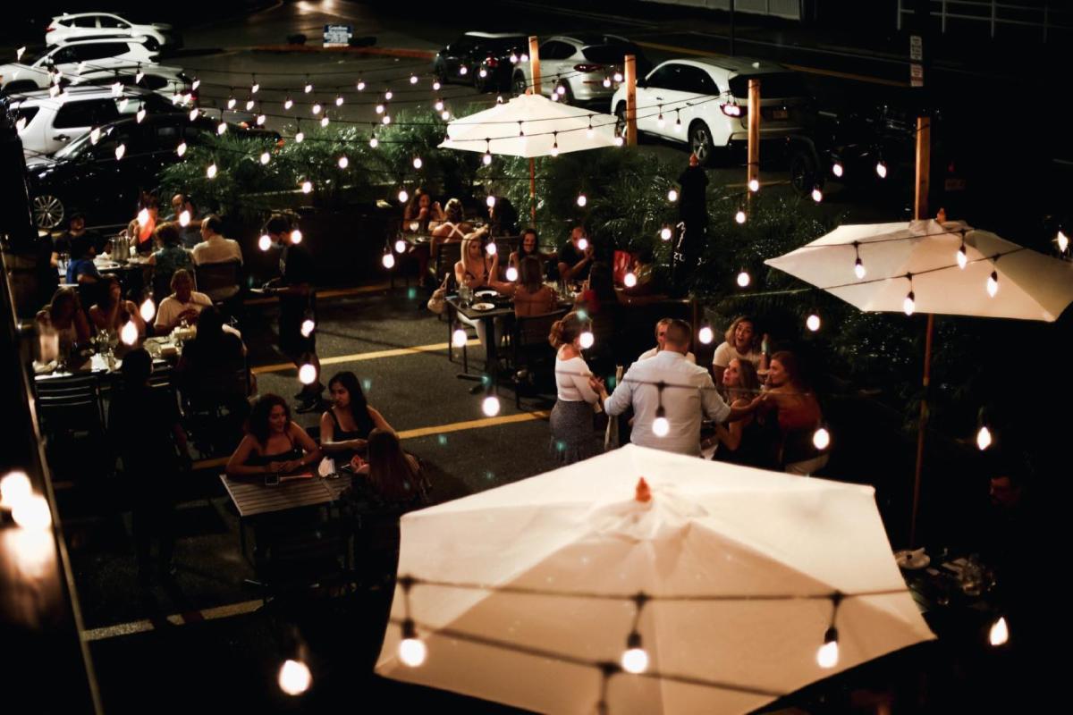 The 105,000 square foot, 120-unit Monarch assisted living residence is proposed to have a south west facing courtyard and entrance plaza which is framed by the newly renovated residential wing and Sheraton Hotel. The exterior renovations will include replacement of the existing stucco and the expansion of the first floor to provide additional resident amenity space. The first-floor pub and dining facilities will extend beyond the existing footprint toward the courtyard and provide an activated exterior patio overlooking the main entrance. The lobby features a monumental stairway to lower-level salon, fitness and wellness facilities. The backdrop for the staircase intends to be a focal element to the entrance and could host a vegetated green wall and other accents.