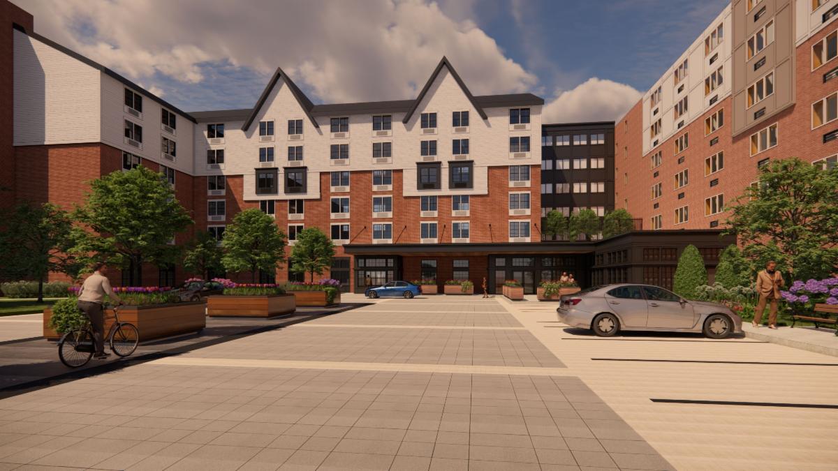 The front portion of the building that will remain a hotel is receiving an extensive exterior renovation as well as upgrades to its lobby, guest floors, and function facilities. The 200-guest room, 185,000 square foot Sheraton will feature 38,000 square feet of conference and pre-function space and a new function terrace. A new Sheraton Club Lounge will be added to the lobby. Exterior renovations will modernize the building, while complimenting the iconic look that has made the Framingham Sheraton a local landmark. New cementitious siding will replace the existing stucco and wood trim. Guest halls will receive upgrades to the guest room entry doors and lighting, while units will receive new finishes and a complete bathroom renovation.