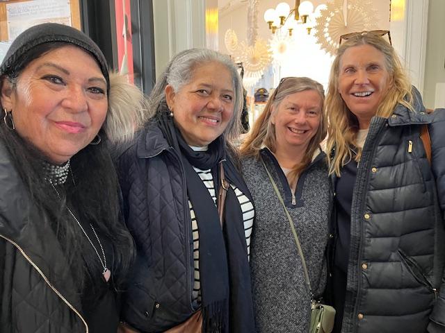 We were especially happy to see Claudia Kenyon, 2nd from left, here with her friends. She told them the story of her uncle Capt. Gumb's boat, the Gull Weed, a large model of which -- made by the captain -- is featured in our main gallery.